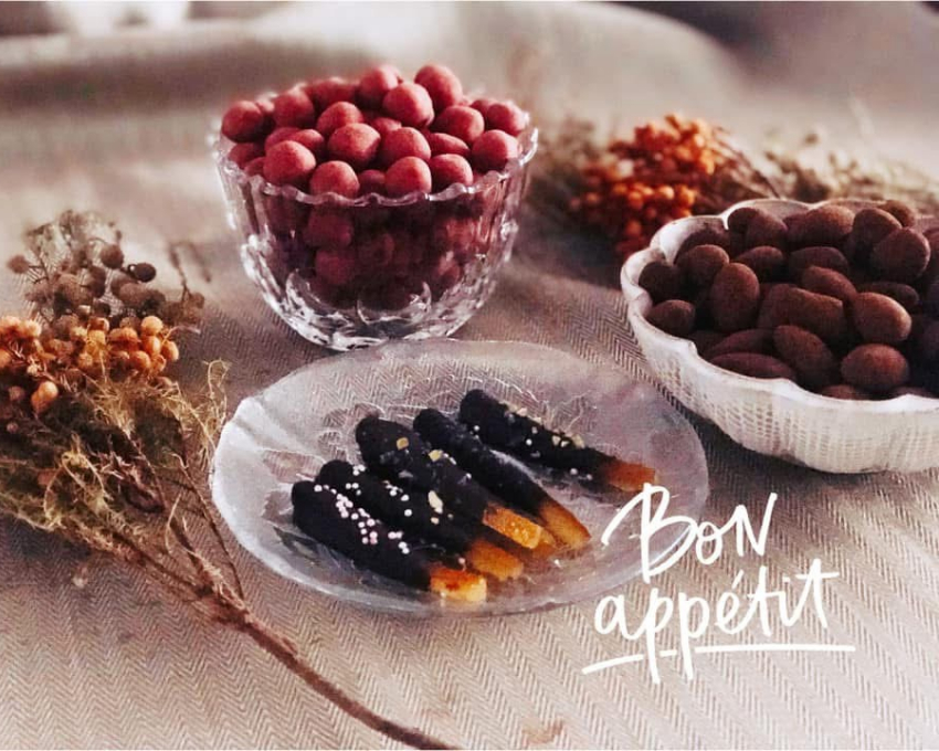 使用法國糖漬橙條🍊輕裹調溫黑巧克力,灑上可口小裝飾,立馬變身高級巧克力專賣