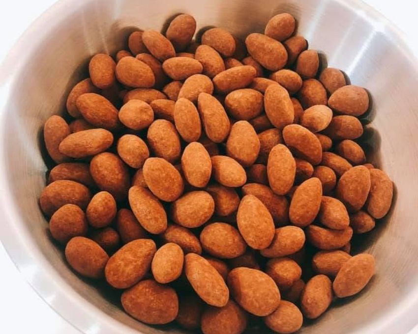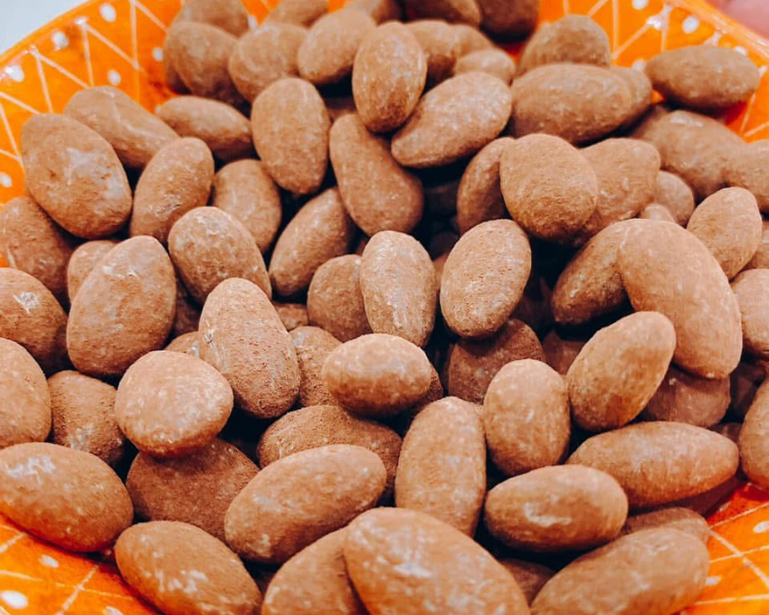 杏仁裹上誘人的焦糖,再上一層調溫苦甜巧克力,再灑上深醇的法芙娜可可粉,咔嗞咔嗞忍不住一口接一口😋