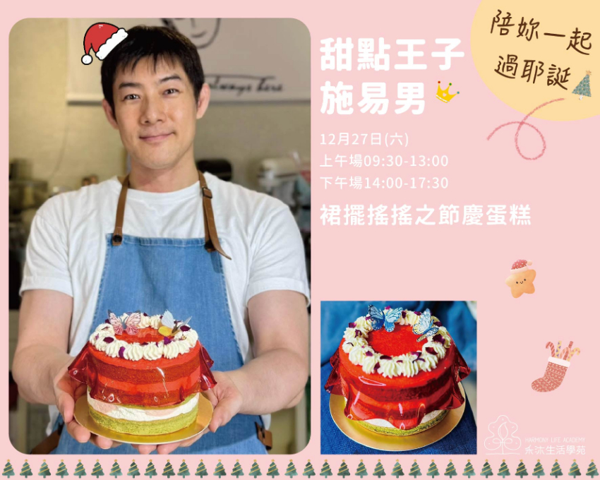 12/27(六) 9:30-13:00【施易男老師👗裙擺搖搖之節慶蛋糕 上午場】