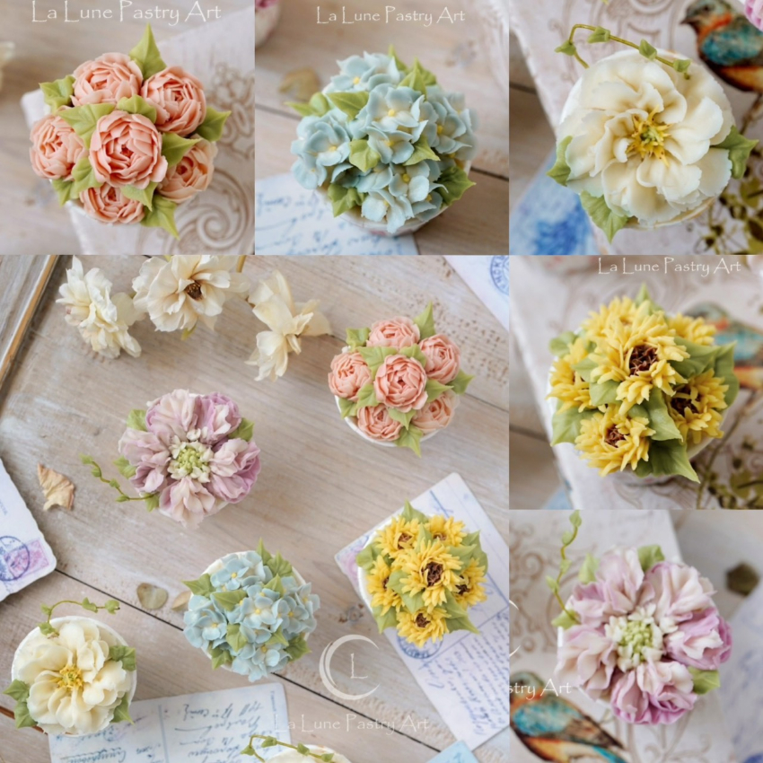 ∝ 擠花花型:製作繡球花、芍藥花球、向日葵、繡球花、立體藤蔓、葉子等造型。加碼!可食用立體枝條做法