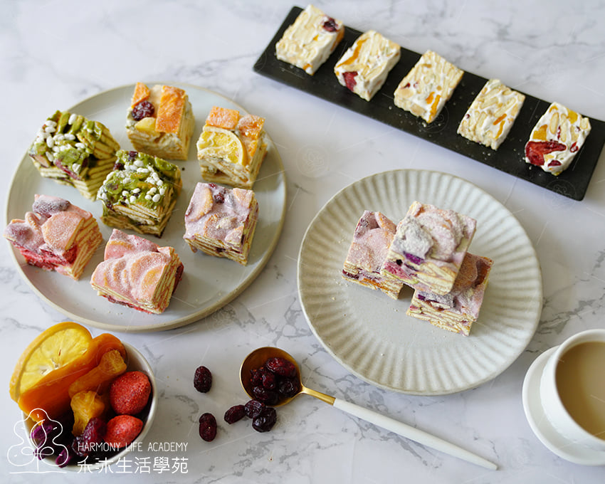詳細說明天然果乾繽紛又健康🍬超時尚伴手禮🎁 2026/1/21(三) 13:30-17:00【水果牛軋糖&草莓牛軋糖🍓】 講師:羅因福 ⚜️內容特色: ∝ 水果牛軋糖 不黏牙、不變硬、不甜膩,製作秘訣不藏私分享㊙加入天然果乾,...