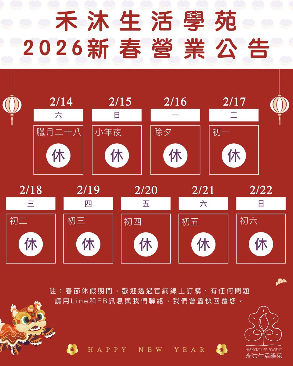 禾沐生活學苑 2026年新春營業公告