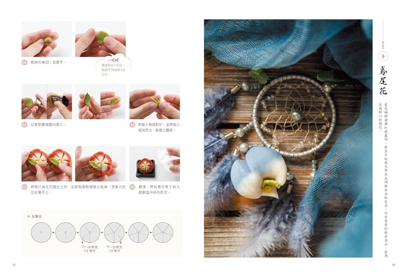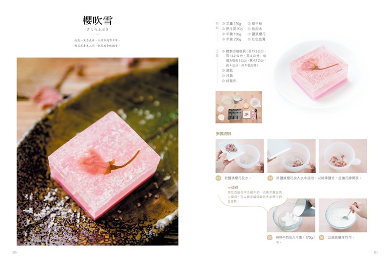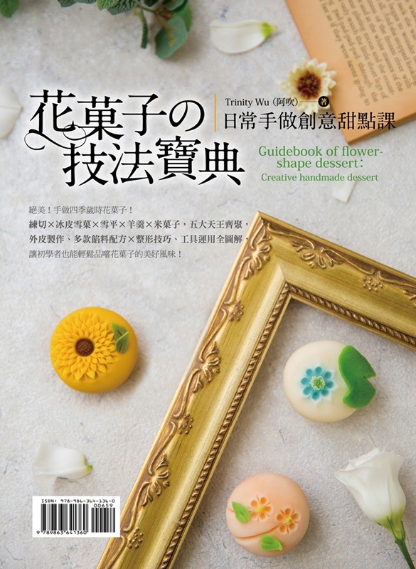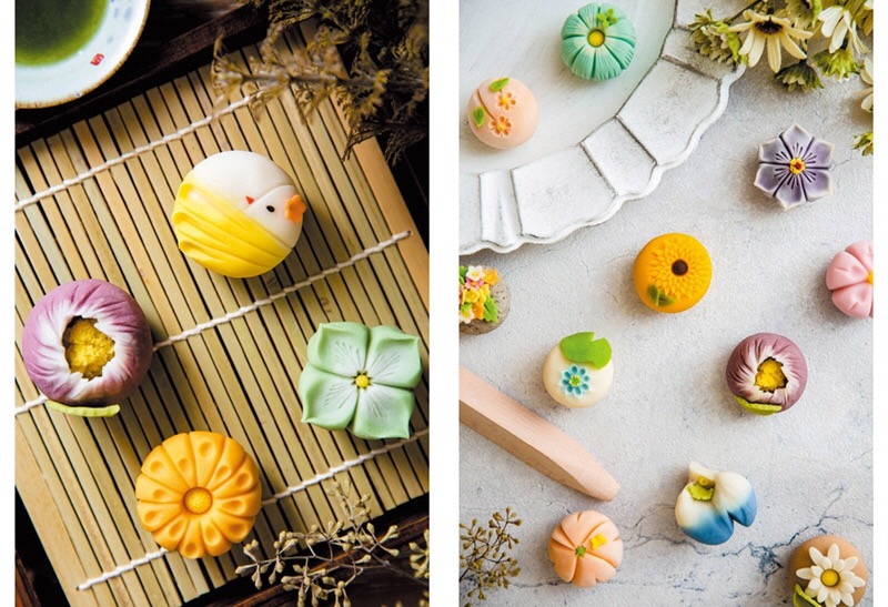 由練切、冰皮雪菓、雪平、羊羹、米菓子五種類型組成的花菓子,以花帶入菓子,並用創新手法翻轉傳統作法,只需用微波爐、瓦斯爐家中常備器具,就能輕鬆做出絕美造型。